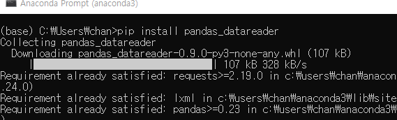 기존에 pandas_datareader를 설치하지 않았다면 anaconda prompt 혹은 command prompt에서 설치해주시기 바랍니다.