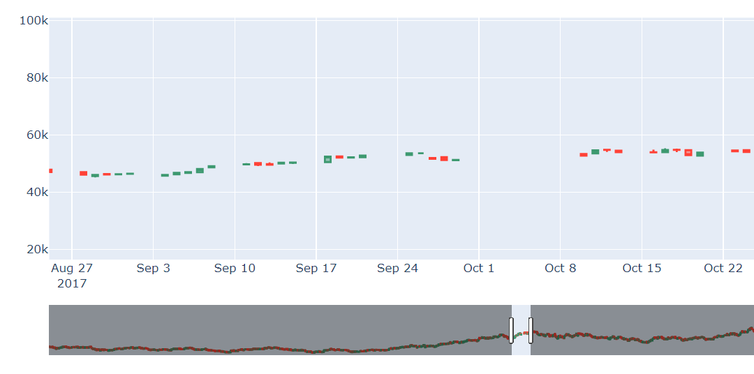 datetime형식으로 x축 값이 들어가기 때문에 plotly에서 자동으로 날짜를 모두 그리고 그중 데이터가 있는 부분에만 그래프를 그려줍니다.