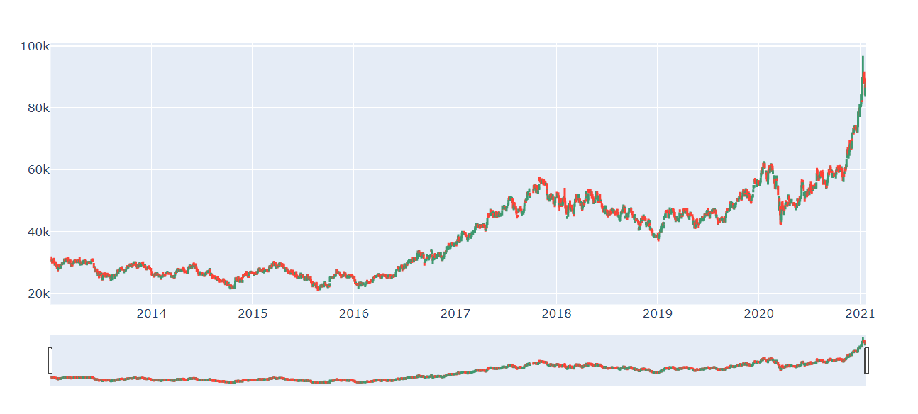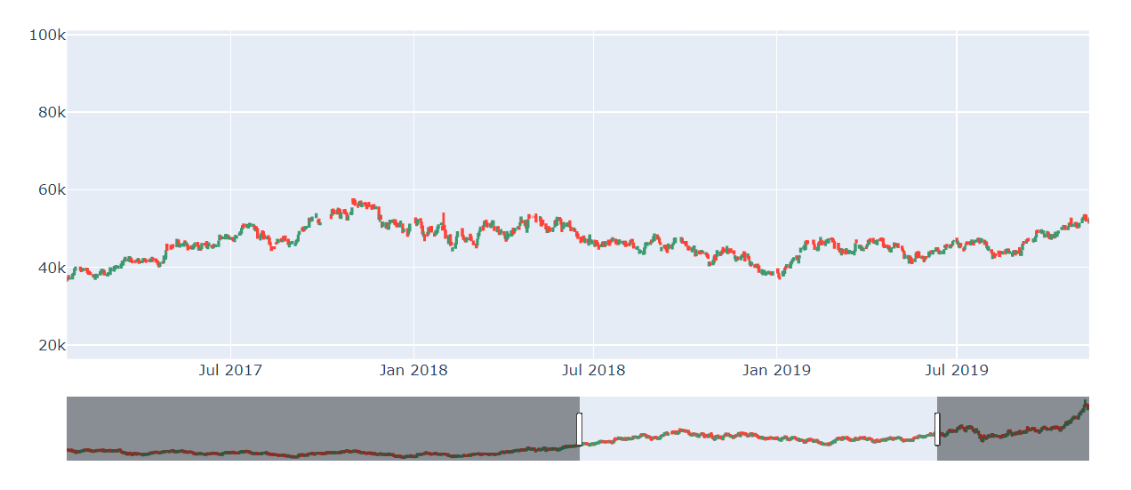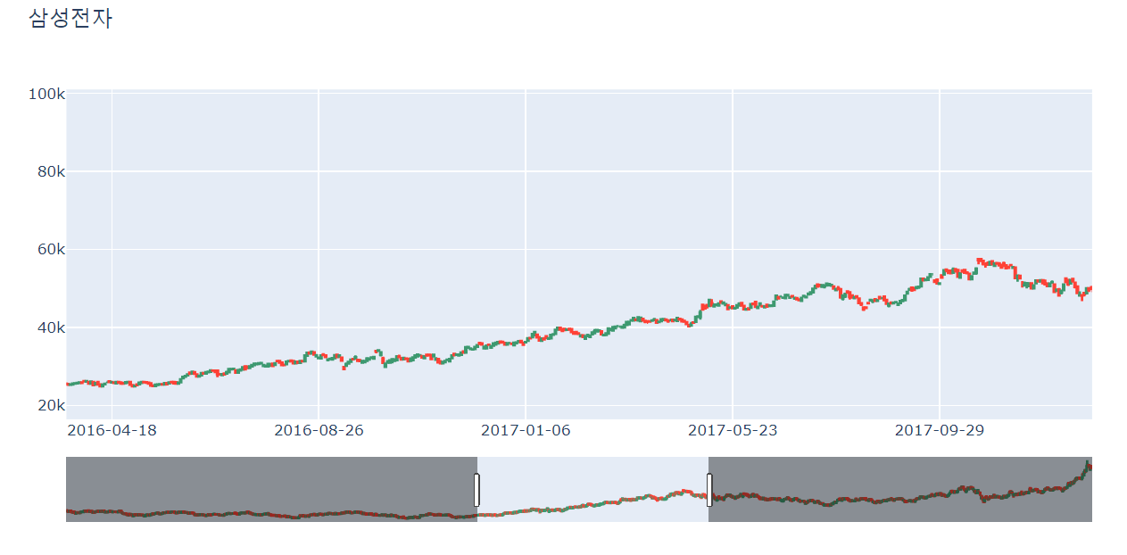 plotly를 통해서 캔들 차트를 그리면 좋은 점은 확대해서 볼 수 있다는 것입니다.