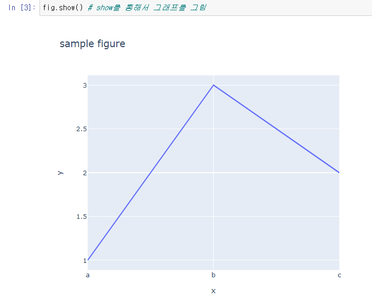 fig = px.line(x=["a","b","c"], y=[1,3,2], title="sample figure")