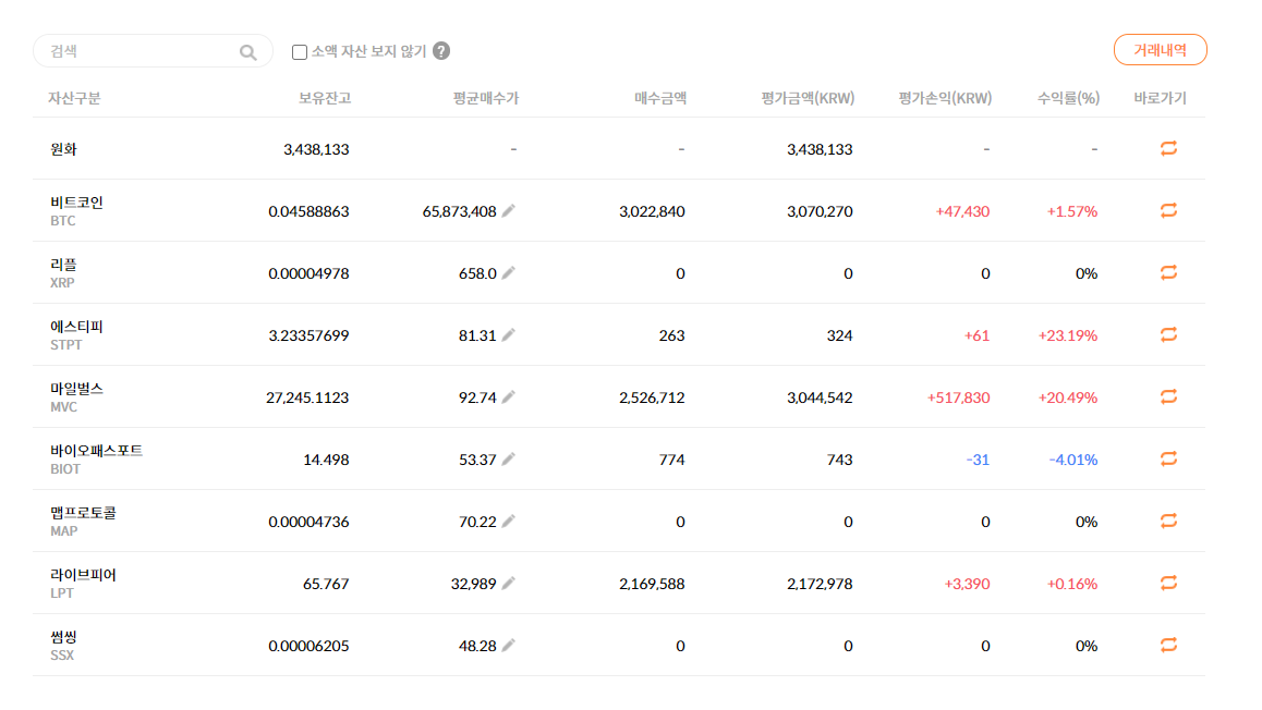 전체 보유중인 코인의 수를 확인할 수 있다.