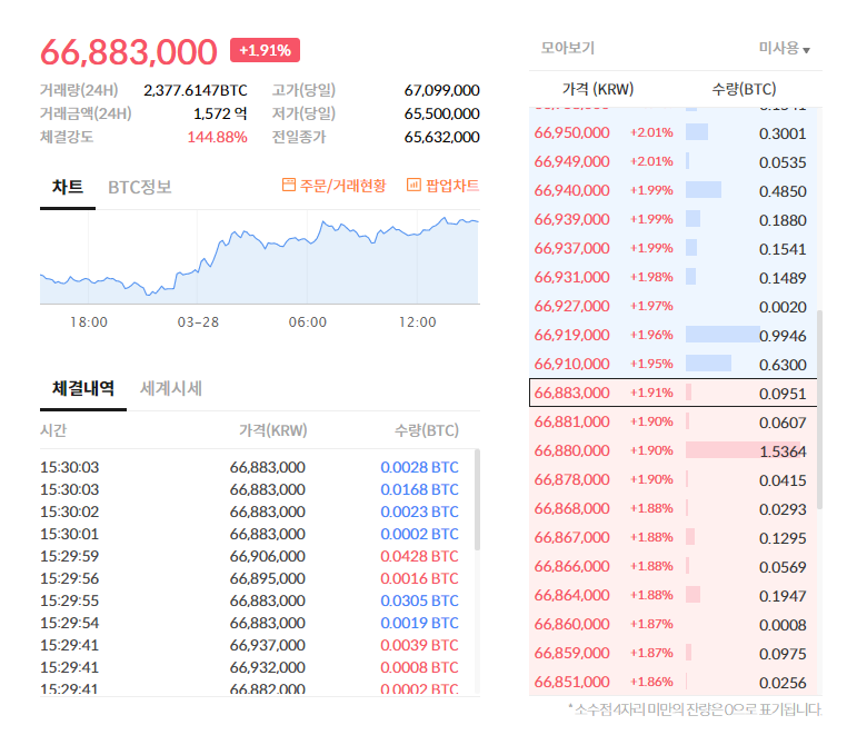 현재 비트코인의 시세가 6600만원을 넘어가니 당연히 매수되지는 않았을 것이다.