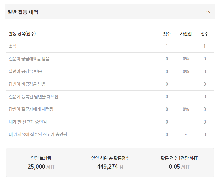 A-ha 서비스를 활성화시키기 위해서 자체적으로 출석체크를 하면 보상으로 아하코인을 지급합니다.