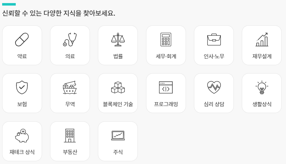 광고 없는 전문 지식 답변을 원하세요? 세상의 모든 전문 지식이 모여있는 곳. 변호사, 노무사, 세무사, 회계사 등 사전에 검증된 전문직 및 현업 실무자로 부터 받을 수 있는 신뢰할 수 있는 전