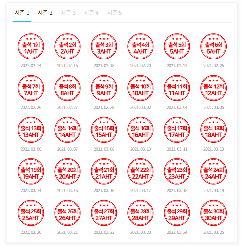 이렇게 출석체크를 할 수록 더욱 많은 보상의 AHT 코인을 얻을 수 있습니다.