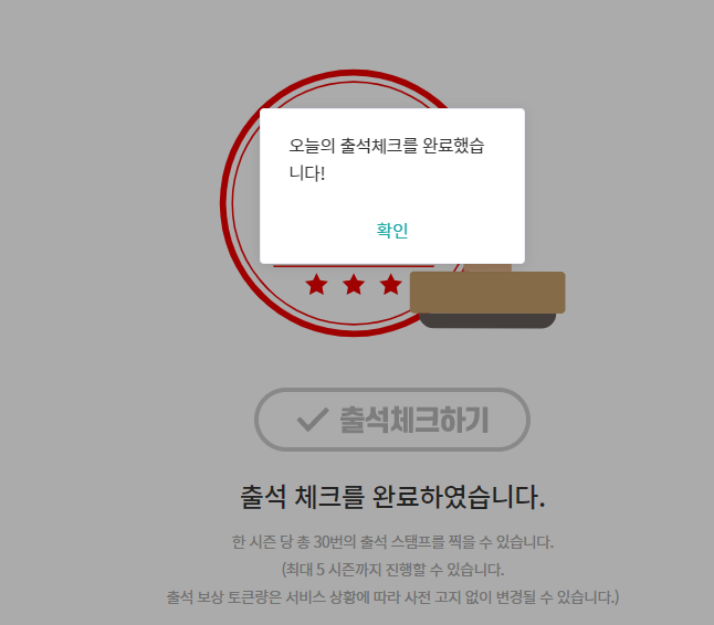이렇게 해서 차근차근 출석체크 도장을 쌓아가시면 됩니다.