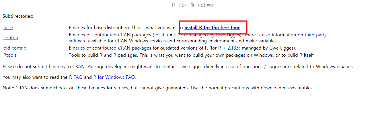 Intall R for the first time 을 선택해줍니다.