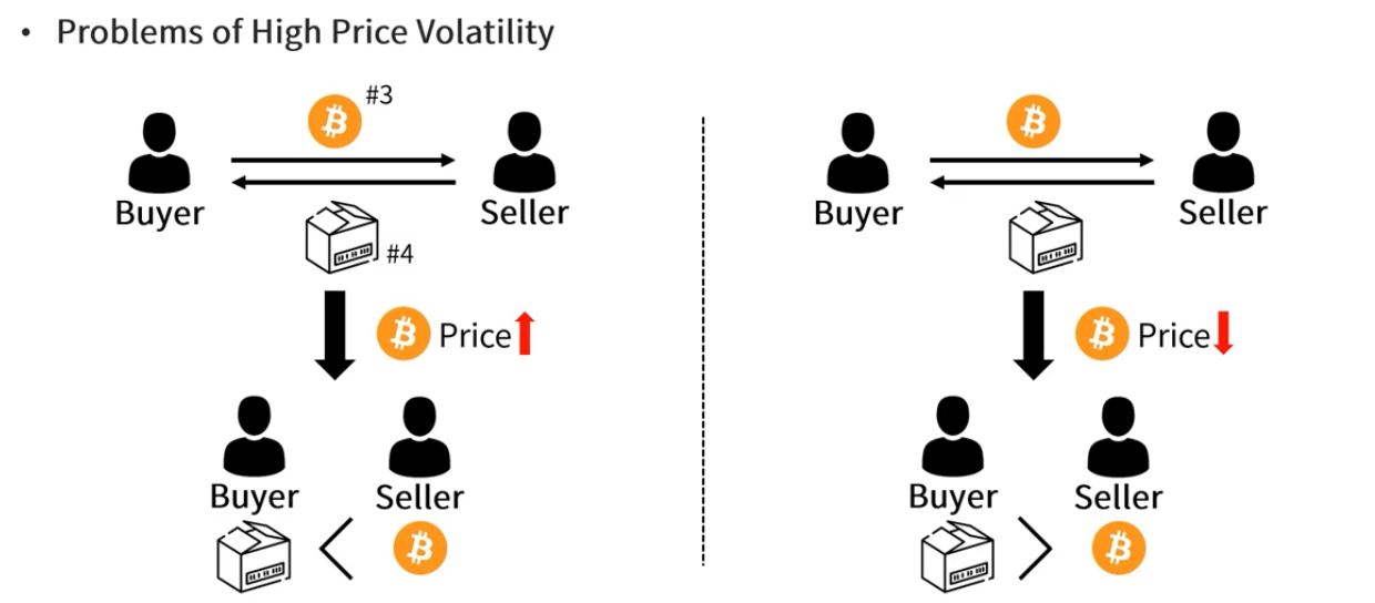 - 암호화폐를 지불 수단으로 사용하기에는 가격 변동에 의한 잠재적 위험이 존재함