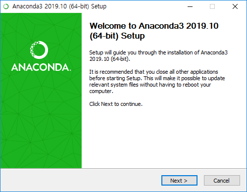 파이썬을 사용하기 편한 환경을 제공하는 "아나콘다(Anaconda)"를 설치하고
