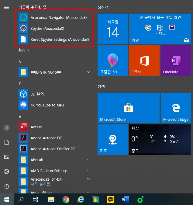 시작 버튼을 누르시면 위와 같이 아나콘다가 설치된 것을 확인할 수 있습니다.