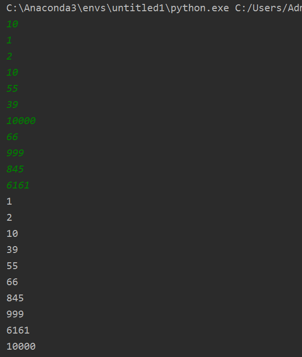 첫째 줄부터 N개의 줄에 오름차순으로 정렬한 결과를 한 줄에 하나씩 출력한다.