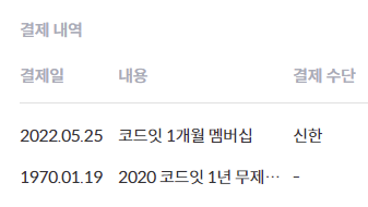 근데 20년에 들은거 왜 결제일 1970년이지 ㅇㅅㅇ;;???