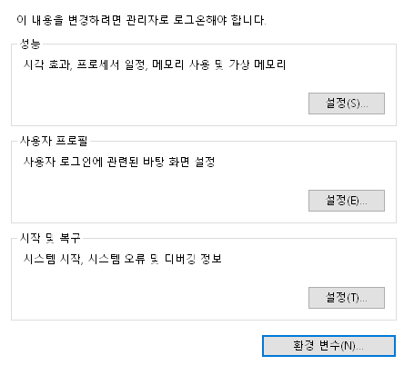 시스템 환경 변수 편집으로 들어가줍니다.