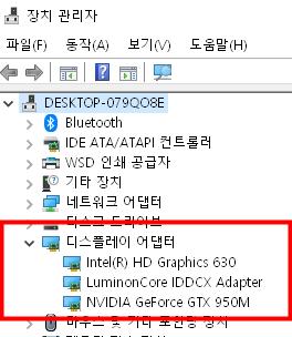 - 장치관리자 > 디스플레이 어댑터