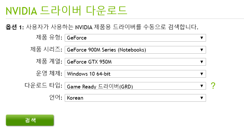 - https://www.nvidia.com/Download/index.aspx?lang=kr