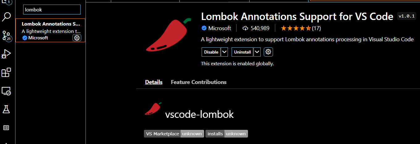 VScode의 Extensions에 들어가 Lombok을 설치한다.
