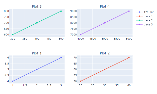 subplot_titles=("Plot 1", "Plot 2", "Plot 3", "Plot 4") # 각 Subplot 별 subtitle 넣기
