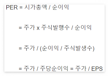 PER = 시가총액 / 순이익