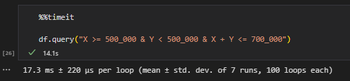 pandas의 query는 df.loc[ pd.eval( … ) ]와 동일한 결과를 가진다.