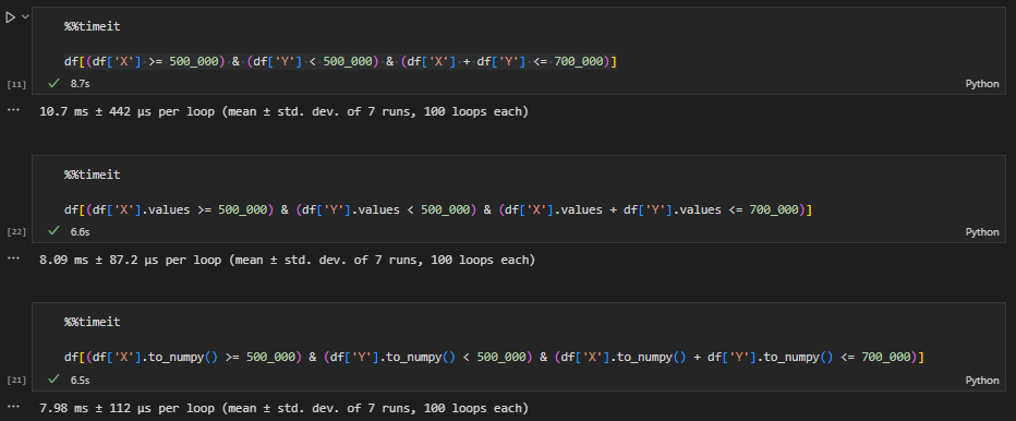 pandas의 경우 최대한 numpy의 vector 계산을 활용하면 전반적인 성능을 최대로 끌어낼 수 있습니다.
