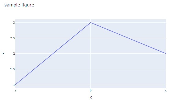 fig = px.line(x=["a","b","c"], y=[1,3,2], title="sample figure")