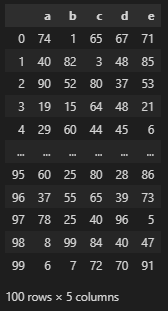 df = pd.DataFrame(np.random.randint(0,100,size=(100, 5)), columns=list("abcde"))