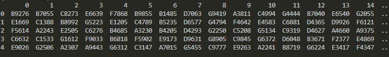 data_generated = ["ABCDEFG"[random.randint(0,6)] +