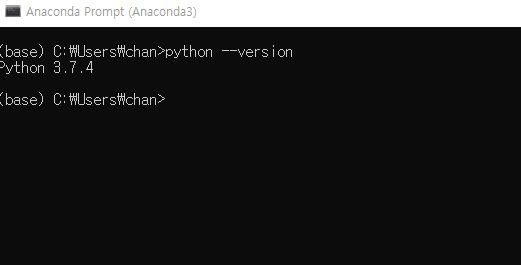 1) 아나콘다 프롬프트 Anaconda Prompt를 실행한 후 파이썬 버전을 확인해주세요.