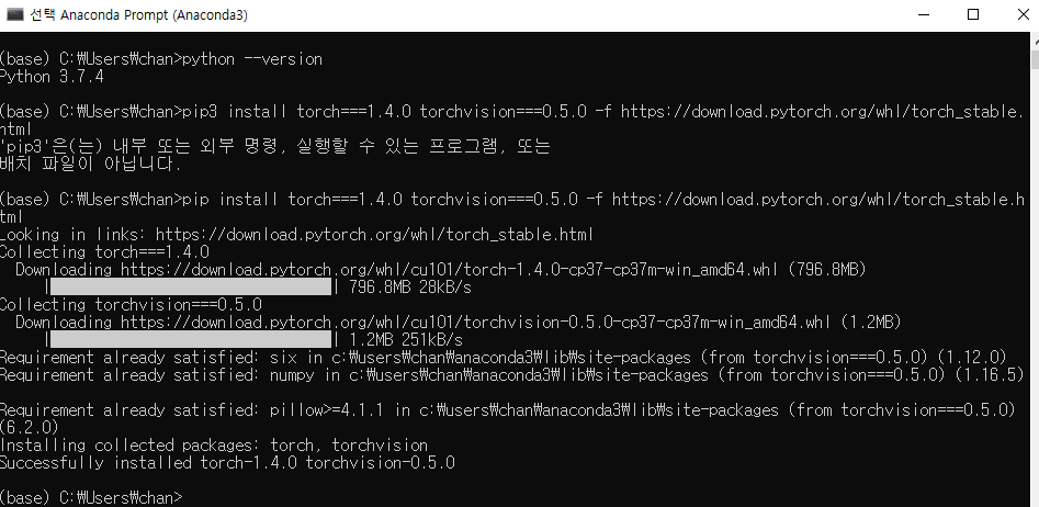 설치가 완료되면 이제 python과 Jupyter에서도 Pytorch를 사용할 수 있습니다.