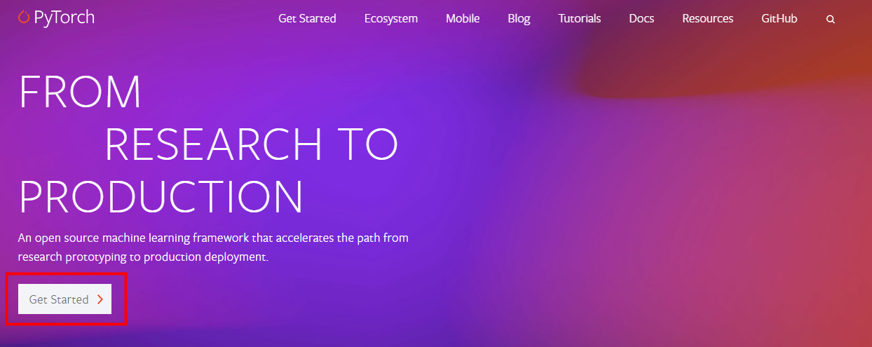2) 파이토치 홈페이지로 이동해서 Get Started를 눌러줍니다.