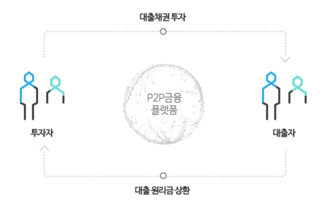 이러한 p2p대출을 위해서 다수의 채권자들에게 돈을 모으는 업, 채무자들의 대출 신청을 받아서 채권자들과 연결해주는 작업 등을 p2p플랫폼이 중간다리 역할을 합니다.
