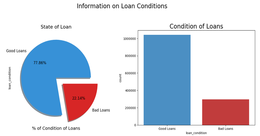 Good Loan과 Bad Loan에 대해서 시각화하여 비교하면 위의 plot과 같습니다. 어느 정도 데이터의 불균형이 발생한 것을 확인할 수 있습니다. 해당 부분을 UnderSampling이나 OverSampling을 통해서 비율을 맞추어 줄 것인지를 고민해봐야 할 것입니다.