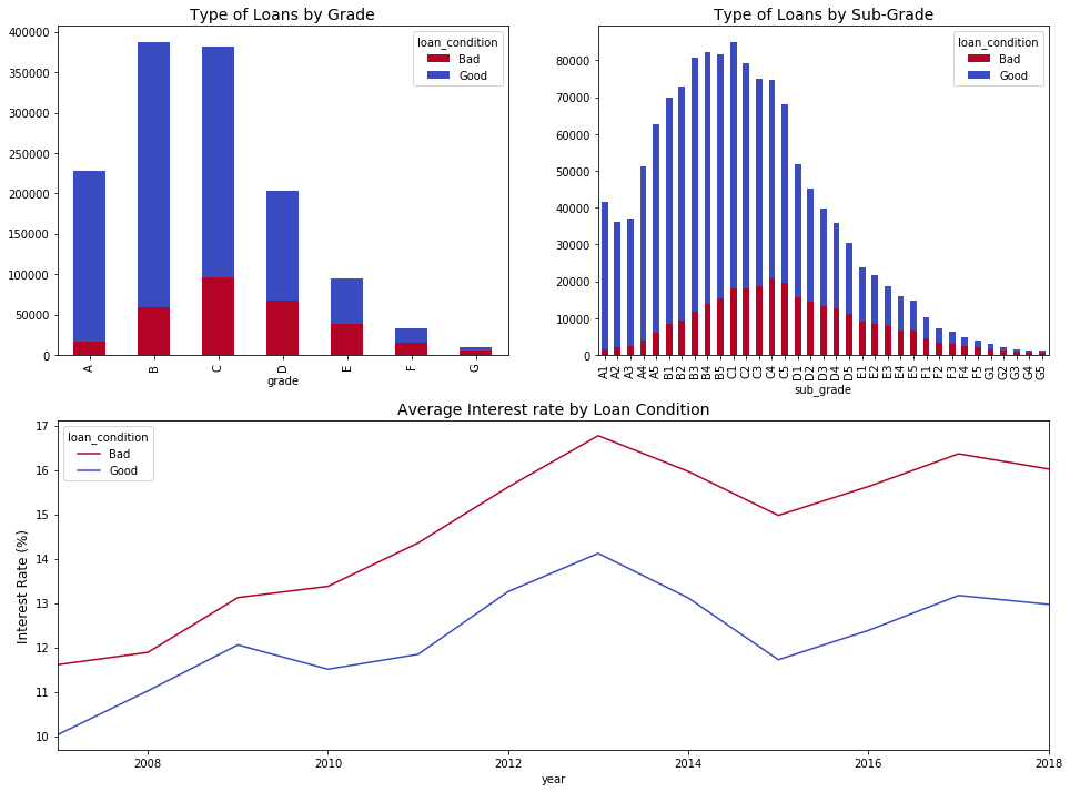 ax1.set_title('Type of Loans by Grade', fontsize=14)