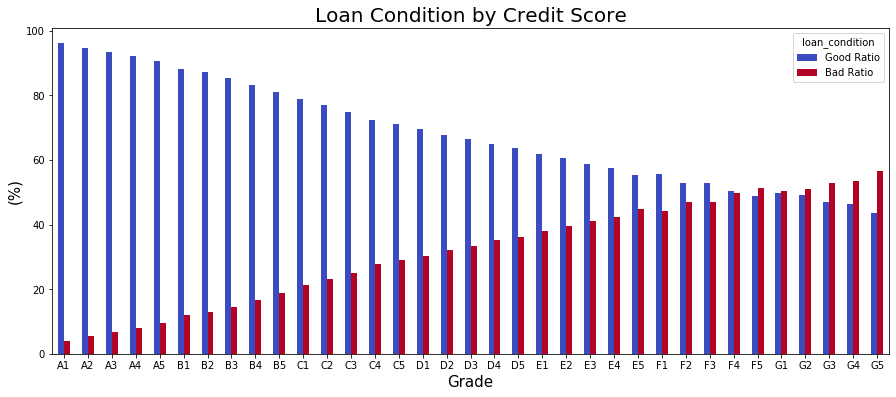 plt.title('Loan Condition by Credit Score', fontsize=20)