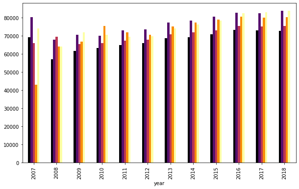 데이터 프레임에서 바로 plot을 사용하여 데이터를 시간화한 부분도 있고 Seaborn 라이브러리 sns를 사용해서 그래프를 그린 케이스도 있습니다.