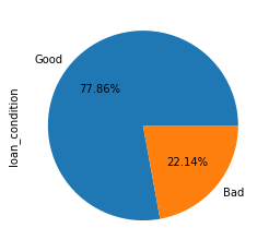 df['loan_status'].value_counts().plot.pie(autopct='%1.2f%%',labels=None)