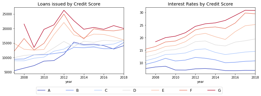 ax2.set_title('Interest Rates by Credit Score', fontsize=14)