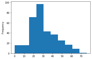 test_dummy['Age'].plot(kind='hist', bins=10)