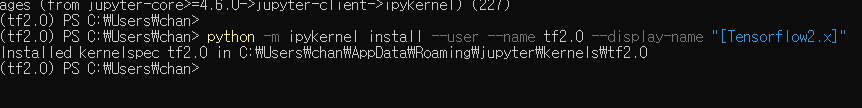 python -m ipykernel install --user --name 가상머신이름 --display-name "표시할이름"
