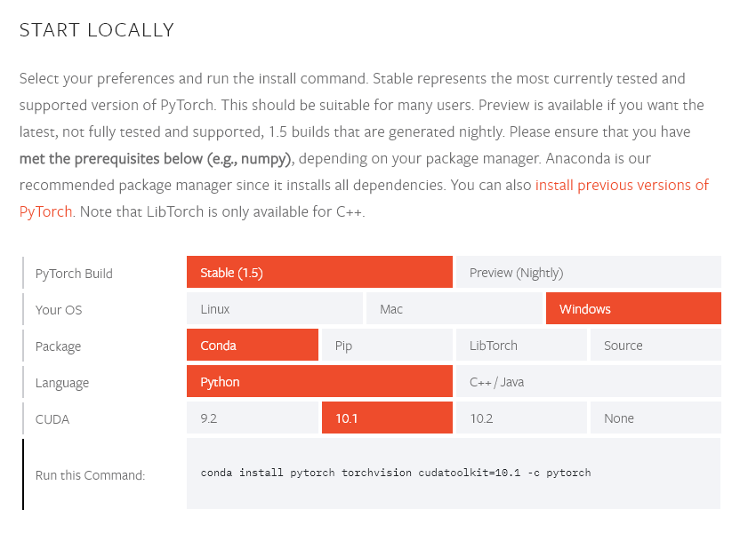 파이토치 공식홈 : https://pytorch.org/get-started/locally/