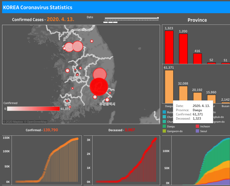 [Tableau] KOREA COVID-19 Visualization & DashBoard with Tableau 본문