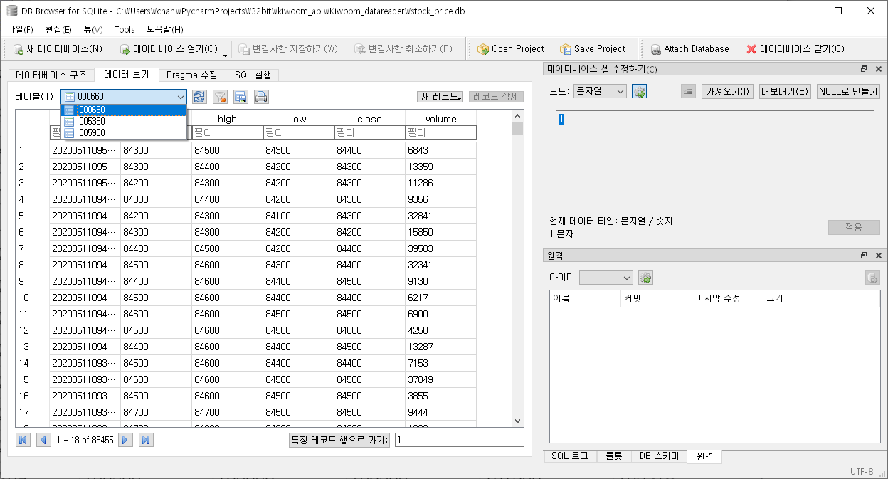 stock_price.db 파일 안에 DB형태로 데이터가 저정되어있습니다.